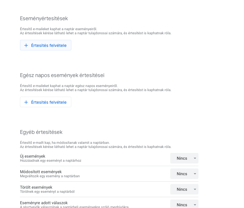hozaadtam mint accountot iosben/osxben, igy athuzza a gcalendar osszes esemenyet az ios calendarba amiben szinten tudsz megadni ertesiteseket, es amiben nekem szinten minden ki van kapcsolva, az ertesitesek meg jonnek,