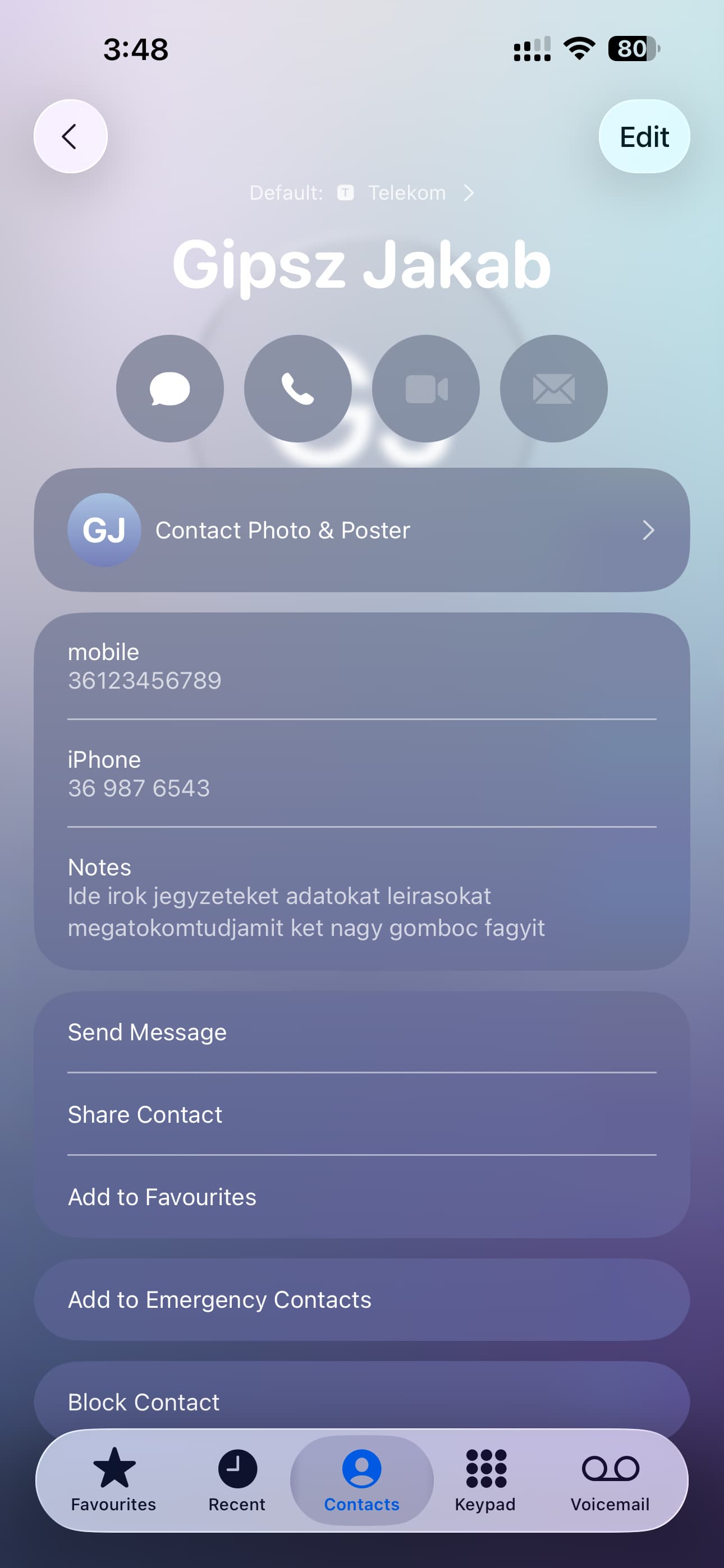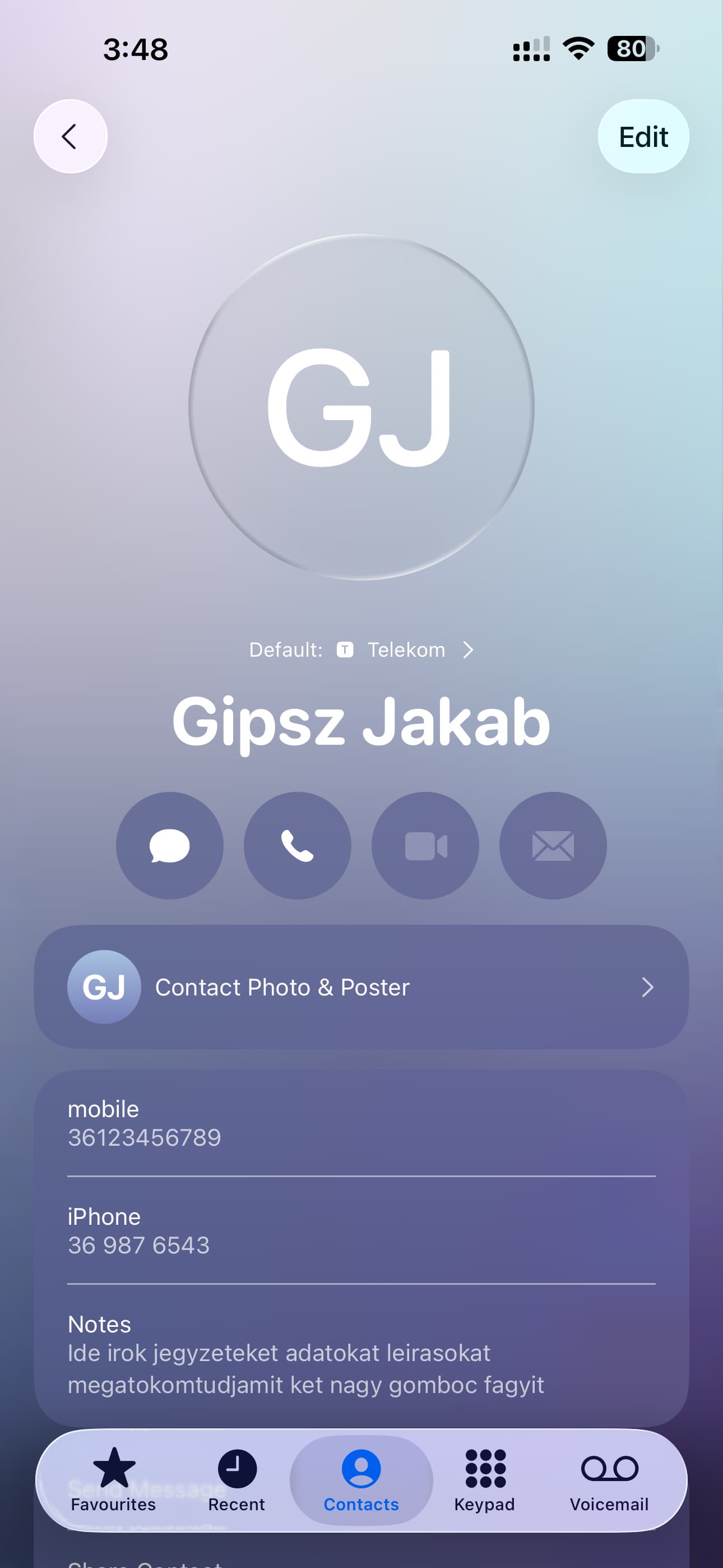 Nekem a jegyzetben a jegyzet szovege ugyonolyan szinu, mint a telefonszam, vagy a lakcim szovege. A jegyzet “fejlece” (a notes szoveg) szinten ugyonolyan szinu, mint az osszes tobbi fejlec. A kepeden nem latszik semmi, csak, hogy van a bejegyzesnek notea es nincs ott tobb adat.